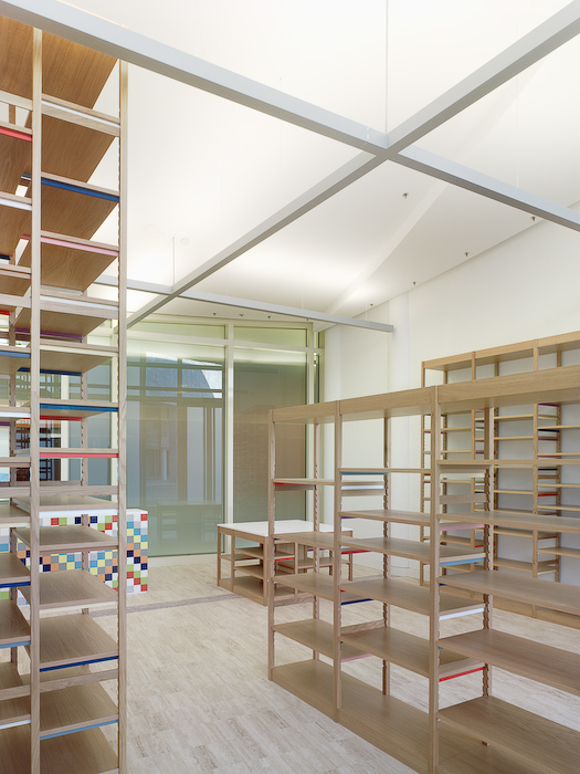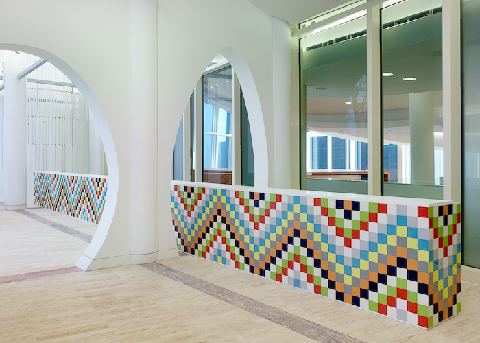 nowoczesne wnętrze typu loft, w starej fabryce elwaro w wrocławiu. projekt pracowni projektowej mariusza wrzeszcz w poznaniu. jasne, surowe, przestronne wnętrze z mocnymi akcentami kolorystycznymi. industrialny charakter wnętrza nadaje idealne tło dla wystawianych prac studentów.